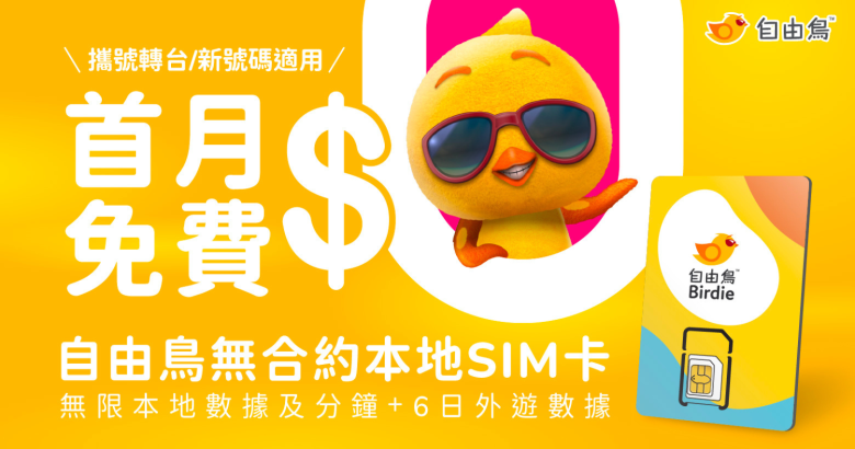 只需要填寫表格,即可以獲得自由鳥無合約本地SIM卡*登記優惠碼 (首月無限本地數據及分鐘+6日外遊數據)