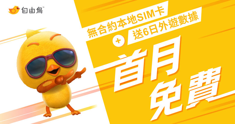 只需要填寫表格,即可以獲得自由鳥無合約本地SIM卡*登記優惠碼 (首月無限本地數據 + 6日外遊數據)